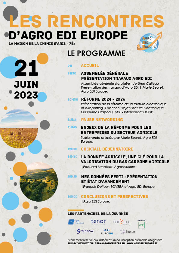 L’édition 2023 des Rencontres d’Agro EDI Europe se tiendra le mercredi 21 Juin prochain à la Maison de la Chimie (Paris VII).
